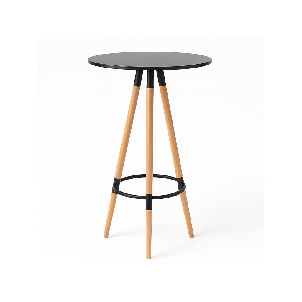 A perfect blend of natural warmth and modern style, the Ames High Table is a versatile addition to casual and contemporary spaces. With its sleek black tabletop and wooden tripod legs, this table offers both stability and aesthetic appeal, making it ideal for cafes, co-working spaces, and social gatherings.